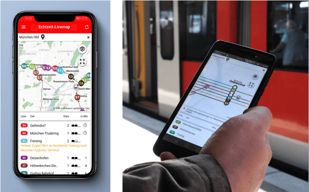 Der Client ist in der offiziellen Auskunfts-App der S-Bahn („München Navigator“) eingebunden und unter s-bahn-muenchen-live verfügbar.